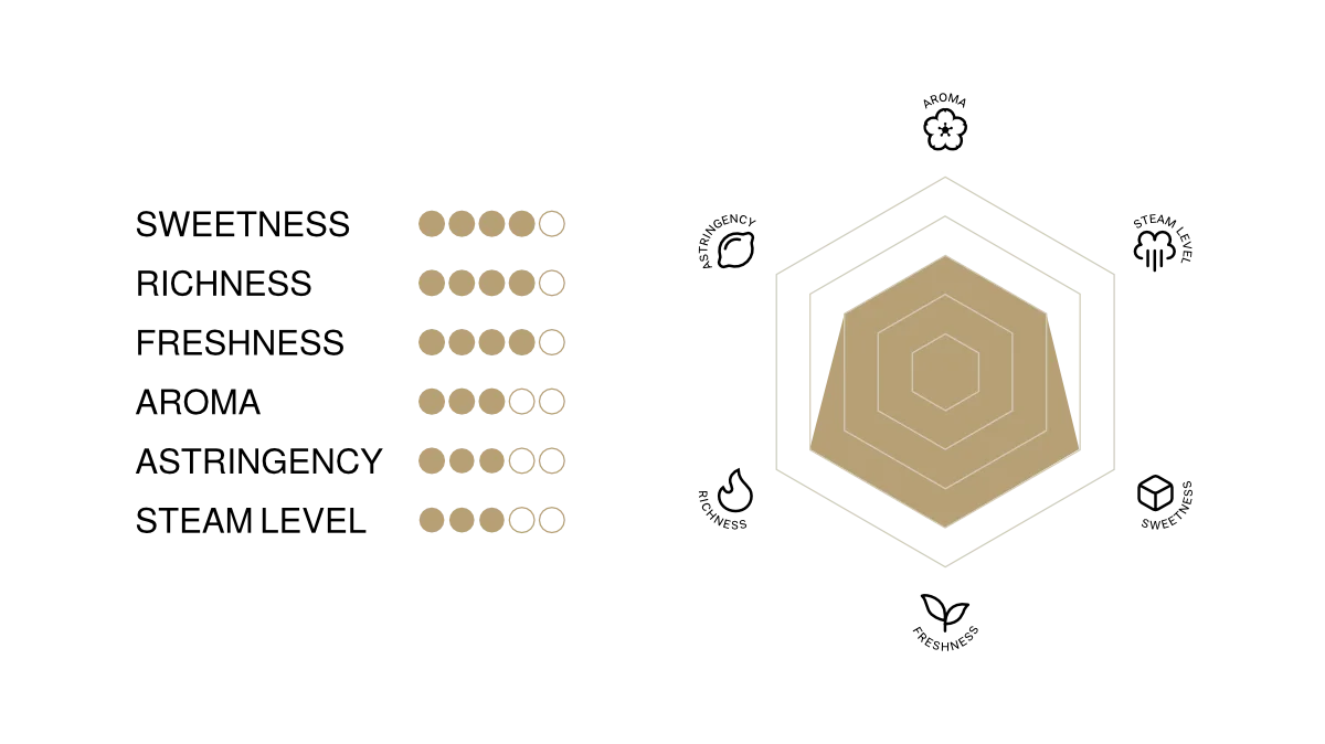 The roasting master Makoto San has created a tea that is both refreshing and flavorful. Through the use of high heat, the tea's astringency is balanced, resulting in a unique and distinct roasted aroma. This tea is perfect for those who appreciate the art of matcha, as well as those who are new to this experience.
